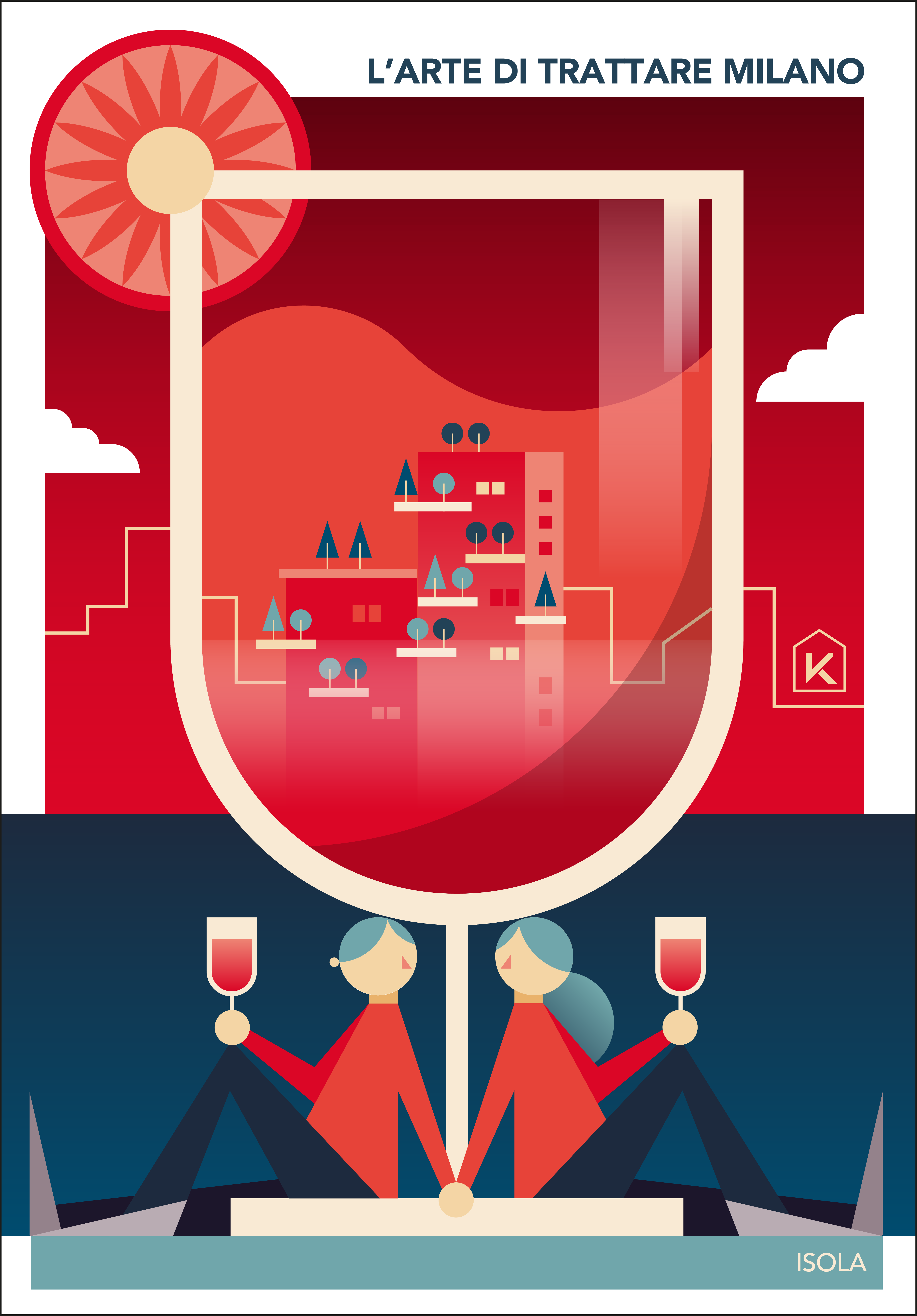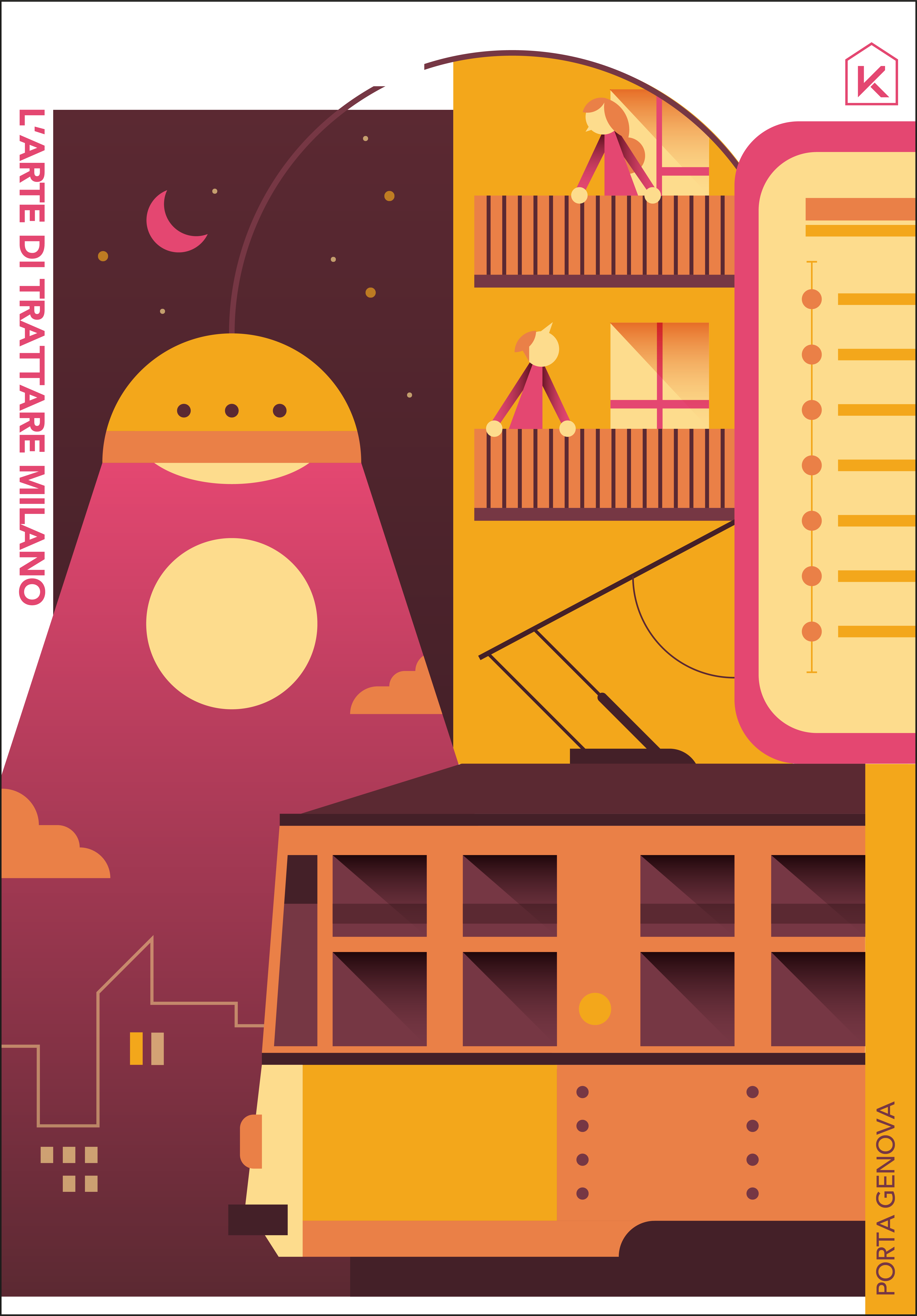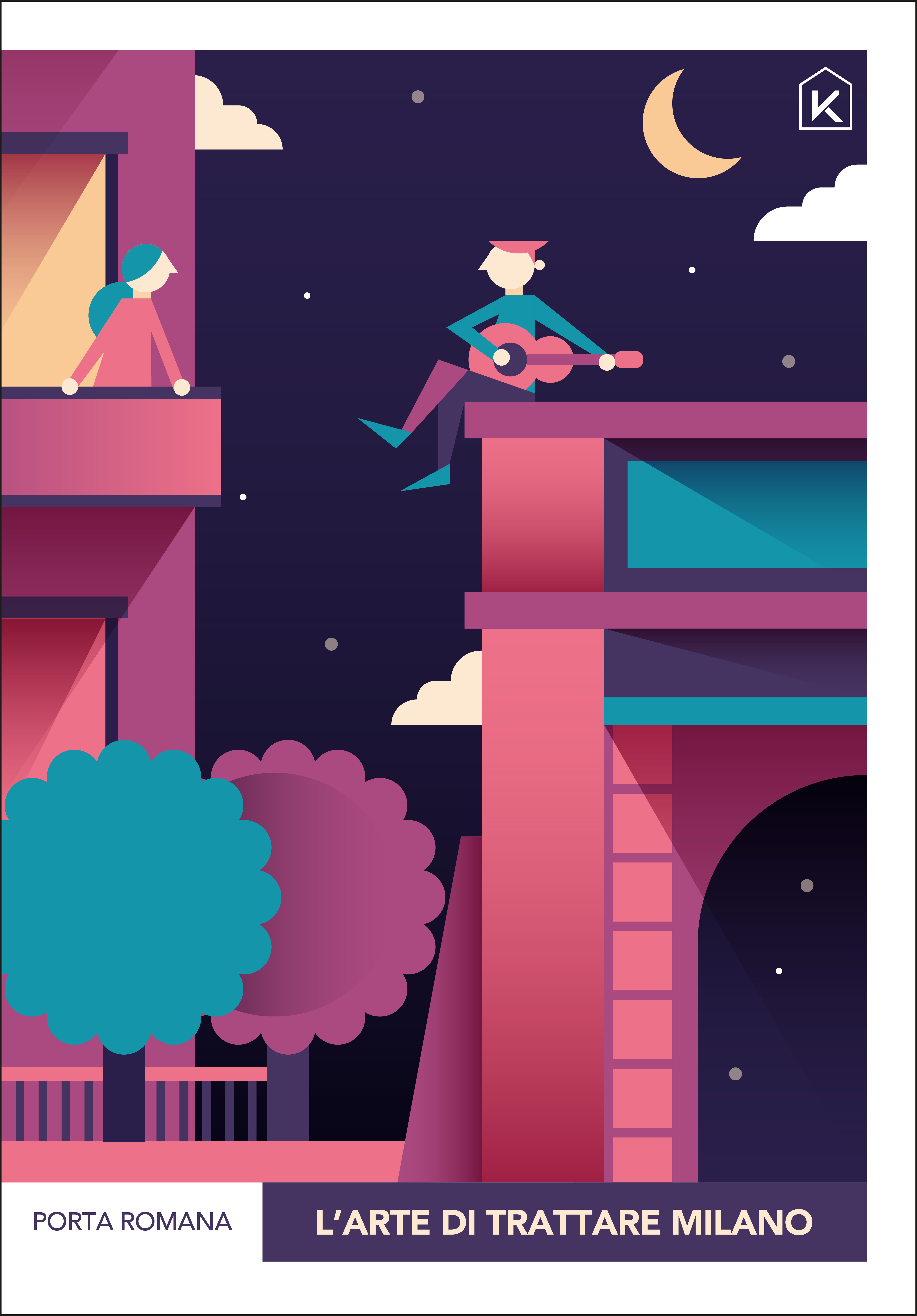 Un parallelismo insolito, che vuole sottolineare l’unicità di KERS nel porsi sul mercato dell’immobiliare. Il progetto vede alcune delle zone più suggestive di Milano contaminate dalle illustrazioni di Poroli, che le ha reinterpretate con il suo stile grafico eclettico, fatto di colori e geometrie.